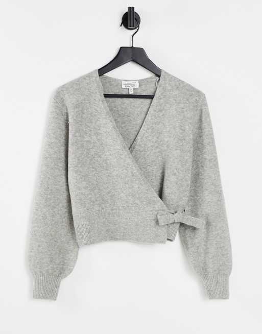 Express shipping free returns. Crafted from cotton in a versatile grey hue this ballet-inspired cardigan features a wrap design with ribbed trims and long cuffed sleeves.