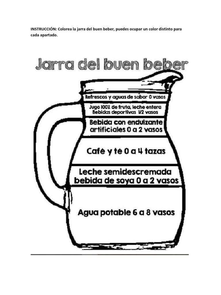 La Jarra del buen beber para colorear on - 355 p. La jarra para bien beber intenta prevenir el consumo de bebidas con exceso de azúcar y dañinas para la salud. Videos sobre la buena alimentación Representación física del plato del buen comer Representación física de la jarra del buen beber Alimentos y líquidos por separado para que los niños pasen a pegarlos Una ruleta 45 minutos Secuencia didáctica Inicio Para iniciar con las actividades se les explicará a los alumnos qué es el plato del buen comer y la jarra del.